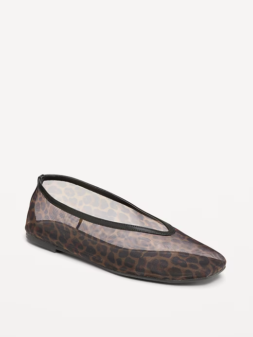 Mesh flats have quickly become a favorite among editors and stylists for their sheer look and lightweight feel. Old Navy’s take pairs the breathable mesh with a traditional ballet flat shape, finished with a pop of personality via barely-there leopard print.