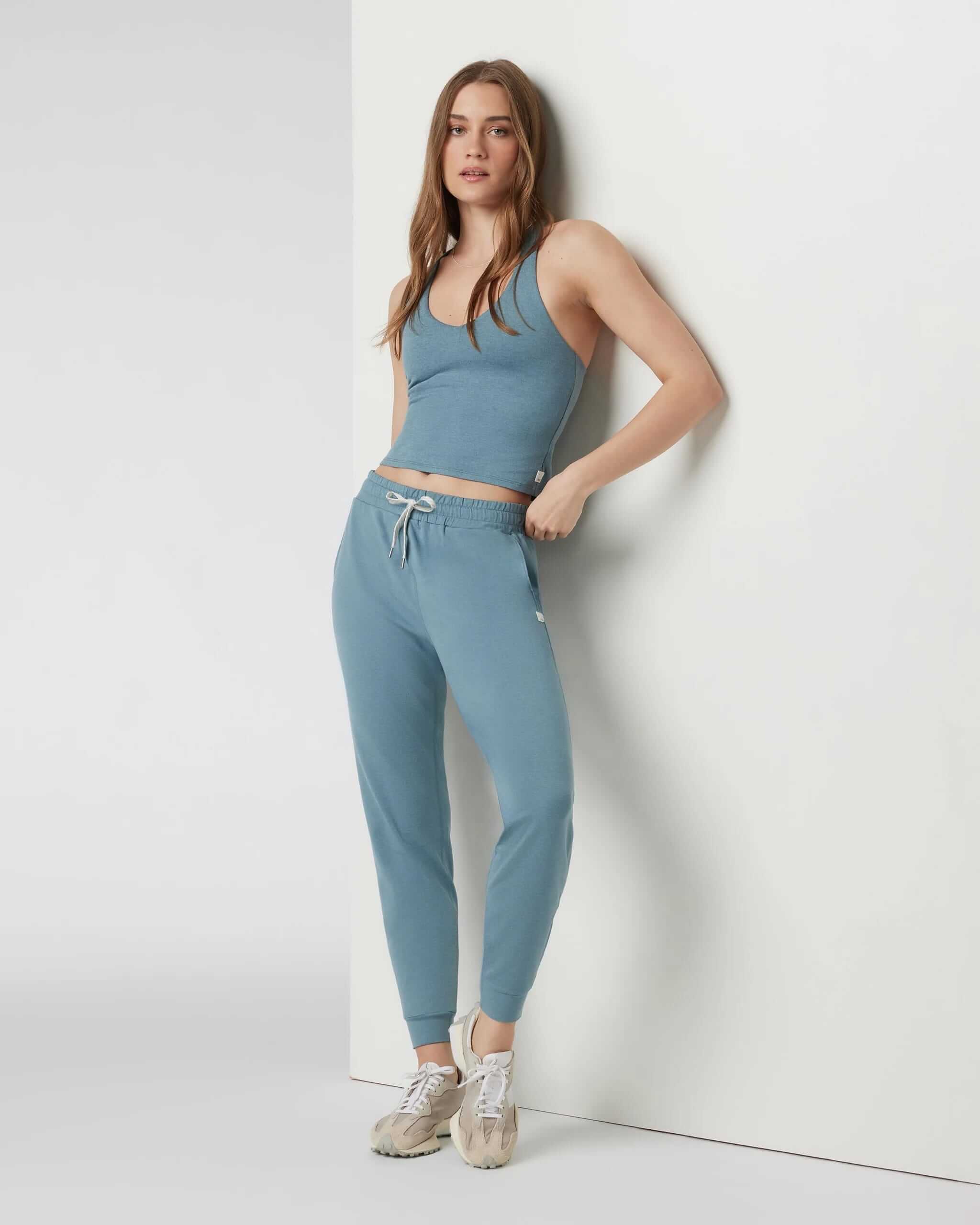 Arguably Vuori’s most viral product, these joggers are essential for workouts and everyday outings alike. Dip a toe in the muted Spring Heather hue for a more neutral take on light blue or go for bold and top with a matching tank.