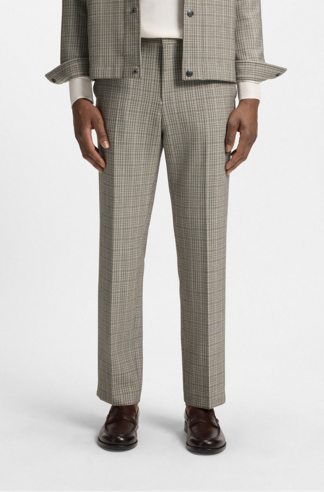 Designed with a soft drape, these stretch-fabric trousers offer ease of movement while retaining a clean line. Suit them up or dress them down — the straight-leg fit and plaid print are perfectly at home anywhere.